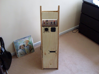 The LP's and the bass are placed in the picture to help viewers get a better idea of the actual size. The height of the cabin is 95 cm and fits nicely into the trunk of a small car. The weight is 22 kg.